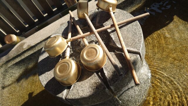 「おはようございます」と挨拶をして、手水舎の清掃のお邪魔にならないように、手と口を漱ぎます。
