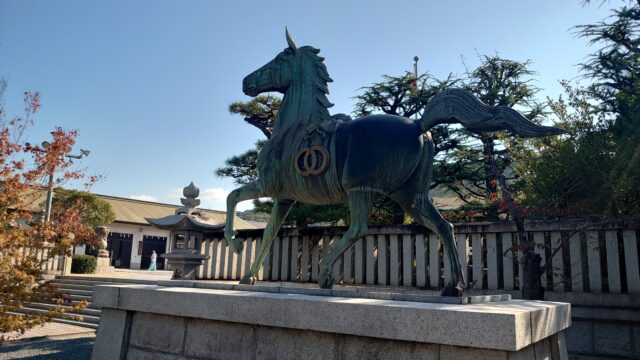 多くの神社で馬の銅像をよく見かけますが、これは、神様は馬に乗ってやってくると伝えられているためです。
