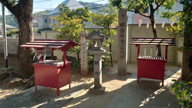 明治神宮と三寳大荒神神社の遥拝所がありました。