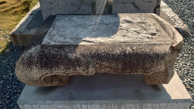 確かに狛犬もこちらの台座も、欠けたりひびが入ったり右側の劣化が著しいですね。