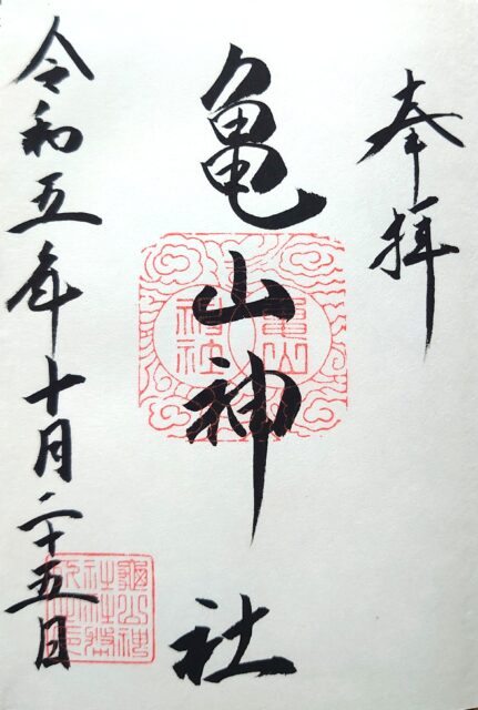 左下の印は「亀山神社宮司之印」と、篆書体(てんしょたい)で書かれています。