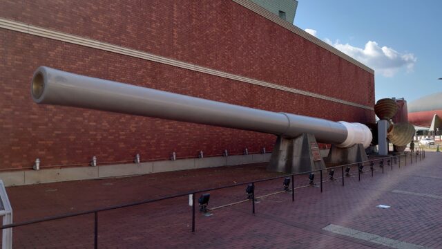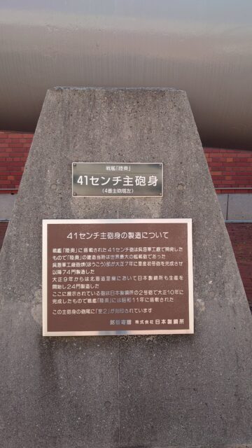 大正9年(1920)に進水した戦艦「陸奥(むつ)」の41センチ主砲身!