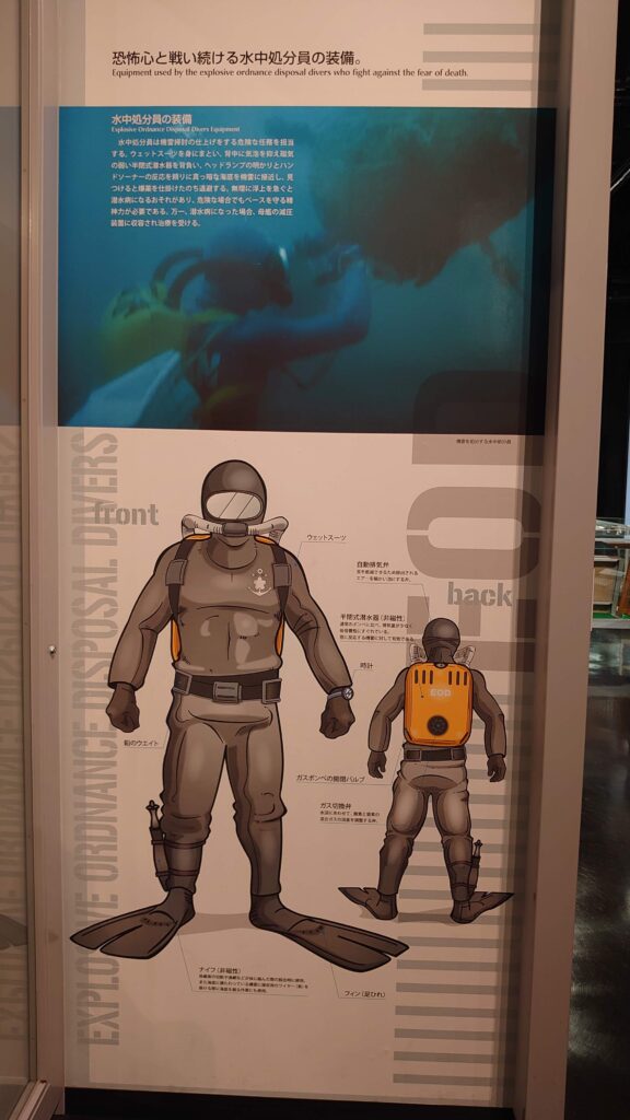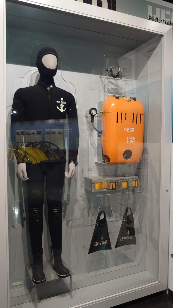 海上自衛隊呉史料館の方では掃海艇のお仕事などの紹介や、様々な用品等の展示を行っています。