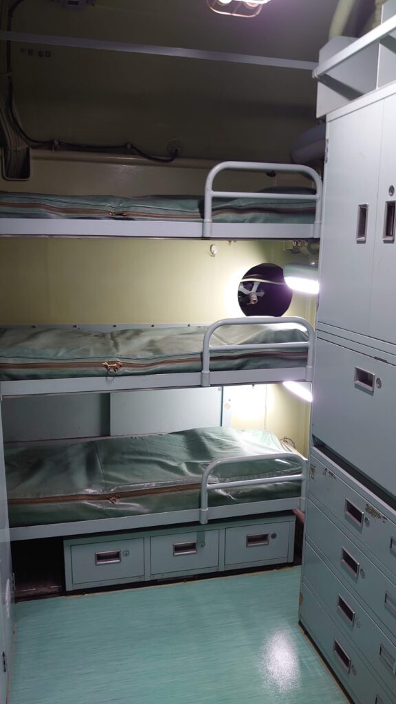 上の写真の左は士官の寝室。3段ベッドは初めて見た!