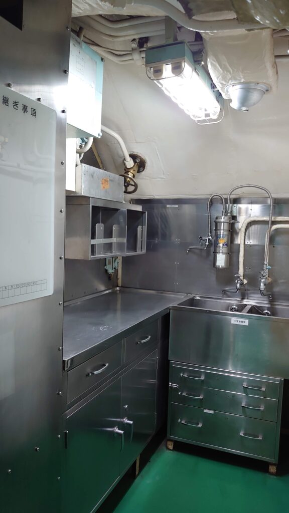 1階下に大きなキッチンがあって、そちらで乗組員の食事を賄うようです。