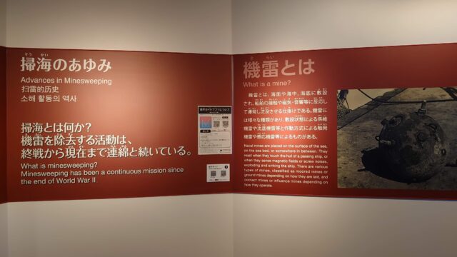 こういった機雷たちが戦後も海の中に残っていて、今日もそれを処理してくれいるのが掃海艇に乗る掃海部隊の方々です。
