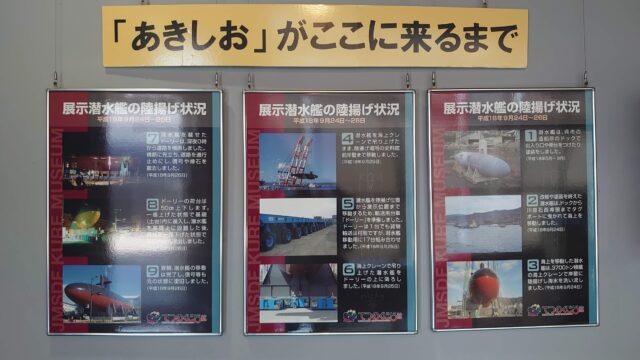 「あきしお」をここに連れてくるために、この巨体を海上クレーンで持ち上げて海から引き上げ、陸からは輸送用台車のドーリーってのを17台も組み合わせ、道路の信号機なども一度撤去して通行量の少ない深夜に移動、そして翌朝にここに到着。