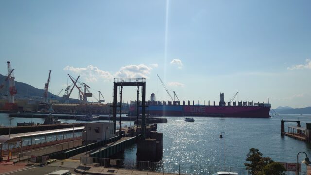 戦艦「大和」を生み出した造船所、呉海軍工廠は、現在はジャパンマリンユナイテッド(JMU)呉事業所となり、大型コンテナ船などを建造しています。