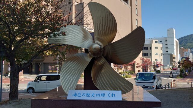 呉駅の南口には造船の街、呉を代表するような大きなスクリューのモニュメント!