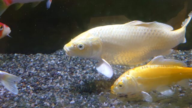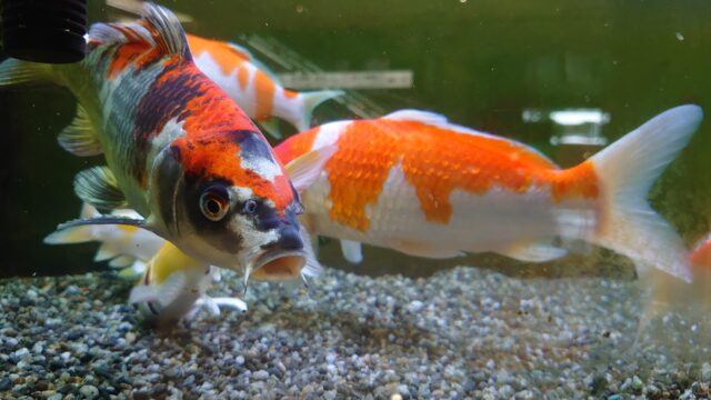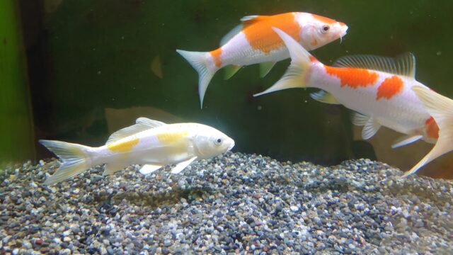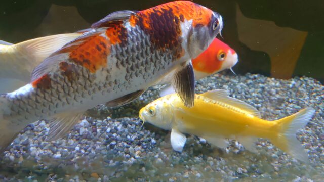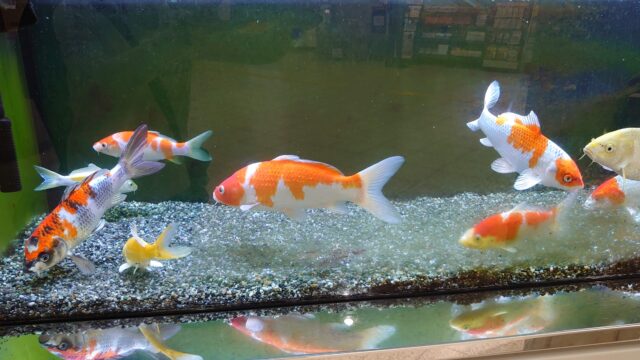 小さいサイズの美しい錦鯉たちでしたが、飼い始めるとコイツら果てしなく大きくなるんだよな〜とか思いながら眺めていました。