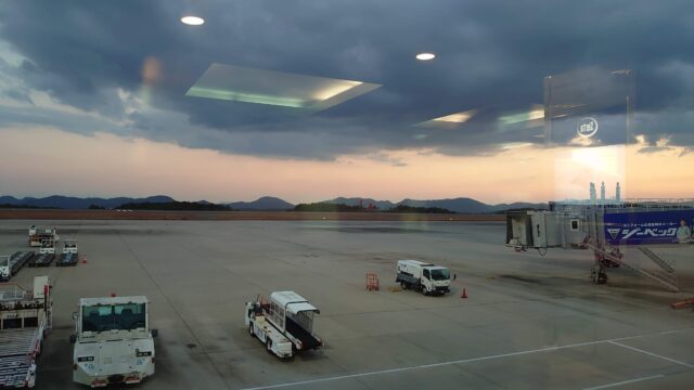 呉駅発のシャトルに乗って広島空港へ向かいます。