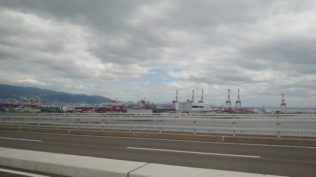 神戸空港から三宮までの移動の途中、キリンみたいな形の重機が聳え立っていました。