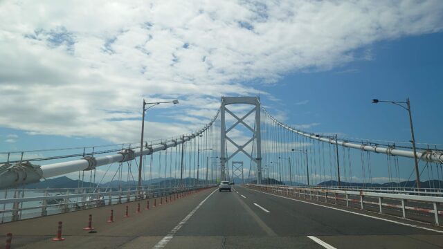 で、しまなみ海道を行って戻ってくるのもつまらないので、そのまま本州を経由して香川に入った方が時間的にも効率が良いし、瀬戸大橋渡って四国と本州を繋ぐ橋を制覇ちゃえ!というノリです。