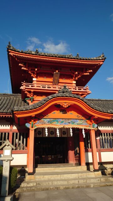 階段の頂上に着くと、朱色が生える立派な楼門が全貌を表します。