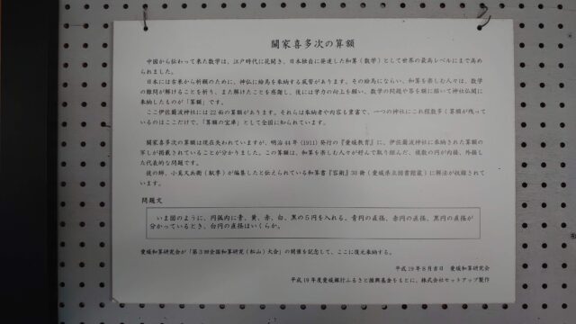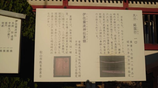 重要文化財の刀と、愛媛県指定有形民俗文化財の算額の紹介。