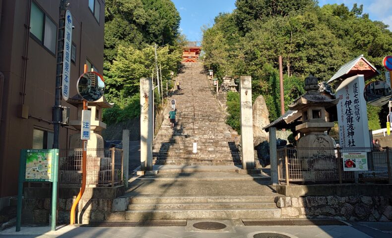 日が暮れる前にそのまま松山市内の伊佐爾波神社(いさにわじんじゃ)へ。