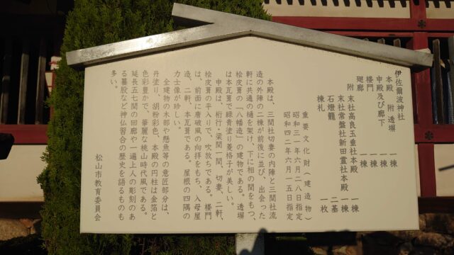 重要文化財であるこの伊佐爾波神社の説明が書かれた銘板を読んでみる。