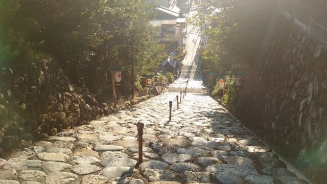 鎌倉時代に時宗(浄土宗の宗派)を創始した、一遍上人(いっぺんしょうにん)というお坊さんの生誕地でもある宝厳寺へ続いています。