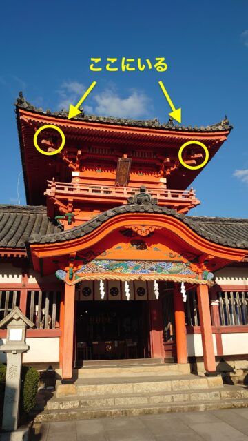 ちなみに、伊佐爾波神社の楼門の写真を再度見てみましたらそれっぽいのがいました!