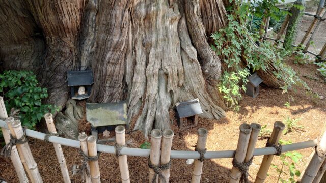 この巨大なイブキビャクシンの樹に、金森大明神という名をもつ金平狸が鎮座している。