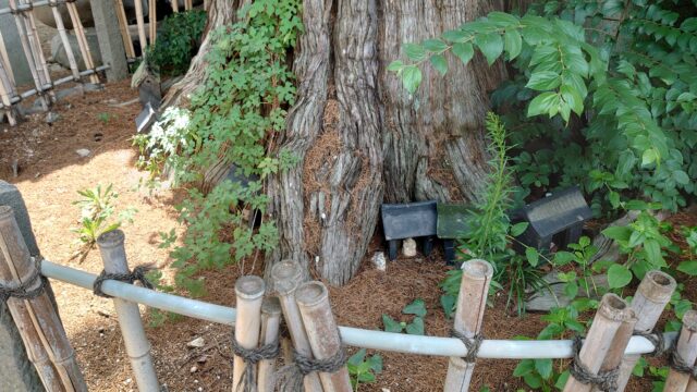こちらが金平狸さんが住んでいるというイブキビャクシンの木。