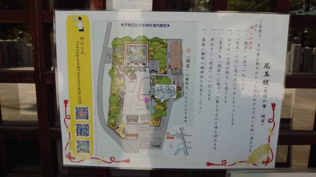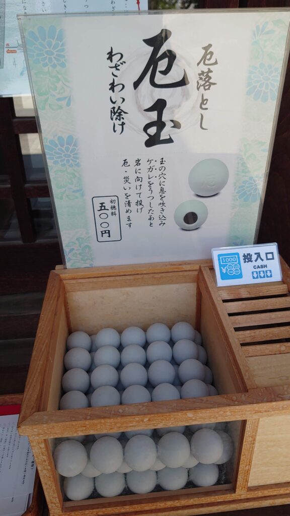 厄玉祓の岩の場所は、境内の右側の奥。
