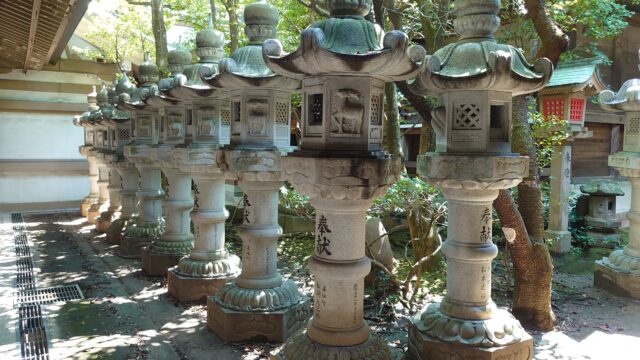 中回廊にはたくさんの灯籠が立ち並んでいて綺麗でした。