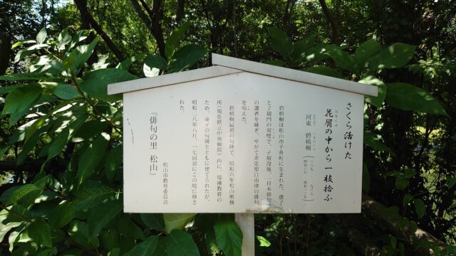 正岡子規と高浜虚子の弟子の、河東碧梧桐の句碑。