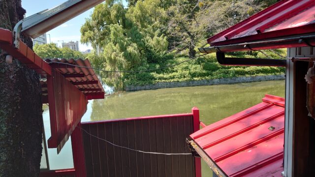 衝立があって景色が見えにくいですが、松山城のお堀。