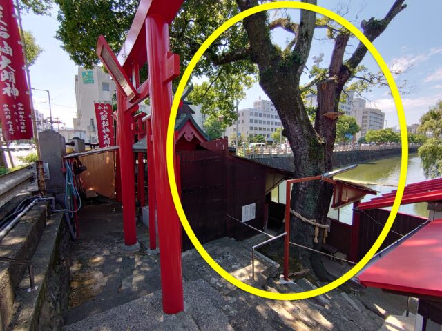 今回この記事を書こうと八股榎お袖大明神の住所などのデータをネットで調べていたところ、ナントこちらの御神木の榎の木が2024年9月22日に幹が一部折れてしまう、という事案があったみたいです。(丸で囲ってるのが御神木)