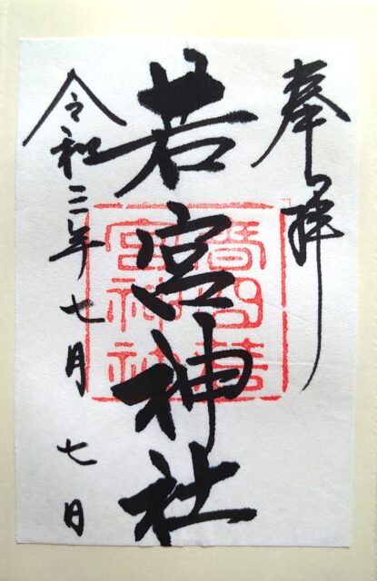 若宮神社の御朱印は、”若宮十五社”の第15番納札社である夫婦大国社でいただくことができます。